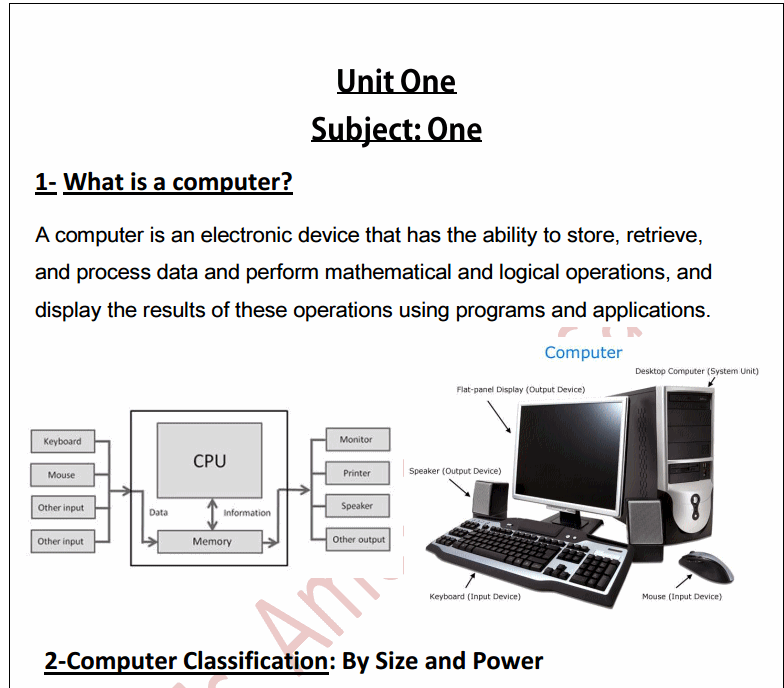 مذكرة شرح الحاسب الالى للصف الاول الاعدادي يلا نذاكر