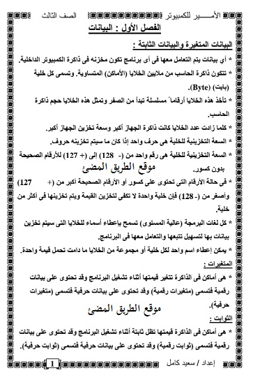 ملخص و شرح مادة الحاسب الالي الكمبييوتر للصف الثالث الاعدادي الترم الثاني الاستاذ سعيد كامل