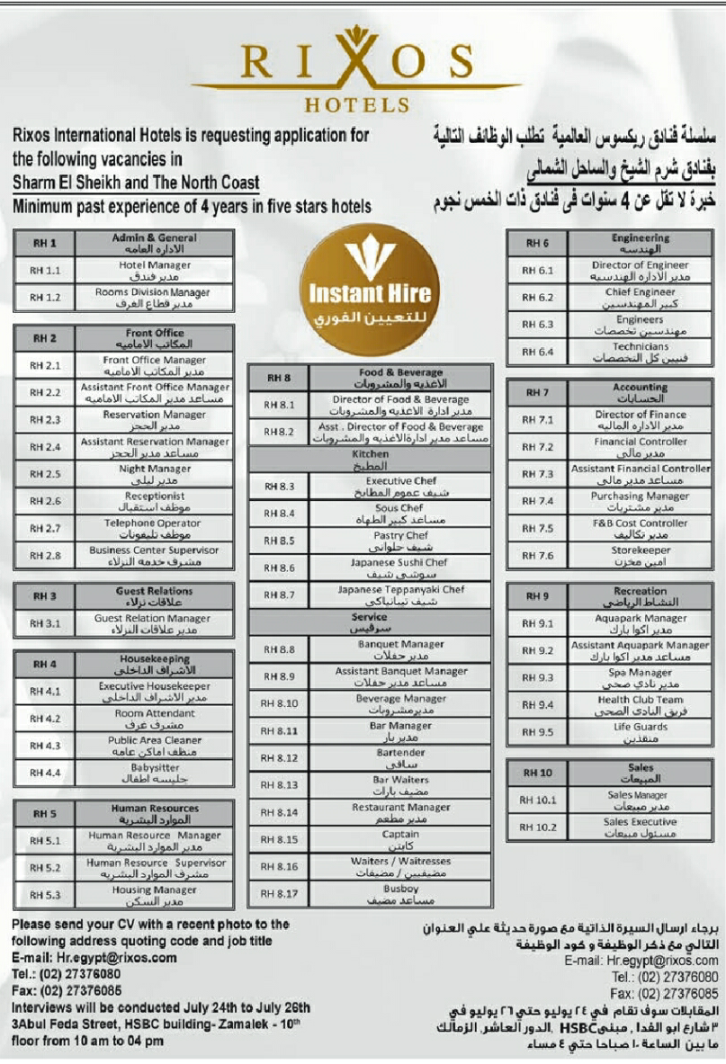 اعلان وظائف فنادق ريكسوس العالميه فى مصر منشور فى الاهرام والمقابلات يومى 27و28 اغسطس