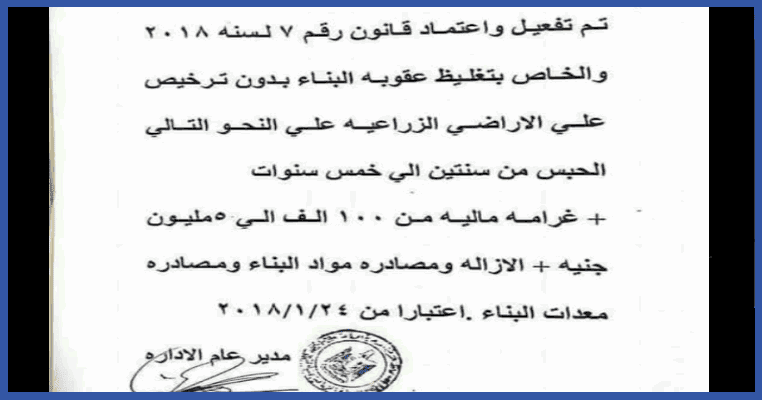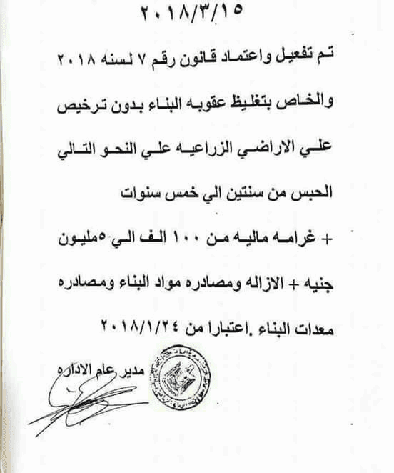 بنود قانون البناء علي الأرض الزراعية الجديد 2018 غرامة تصل لـ5مليون وحبس 5 سنوات وتفاصيل أخري في قانون البناء الموحد