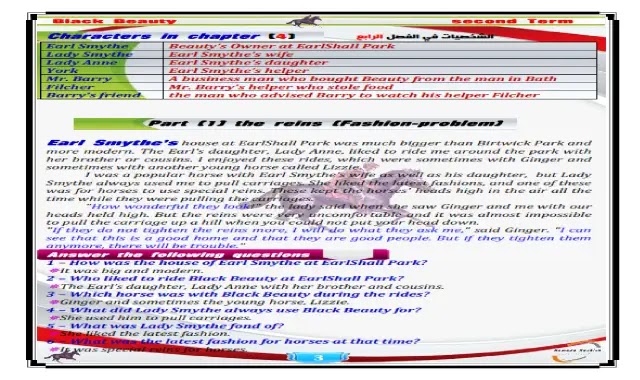 اجمل مذكرة لقصة بلاك بيوتى Black Beauty للصف الثالث الاعدادى الترم الثانى 2020 مذكرة الفارس من موقع درس انجليزي