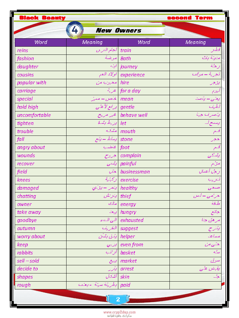 ترجمة قصة بلاك بيوتى Black Beauty للصف الثالث الاعدادى الترم الثانى اعداد مستر عادل الحسينى من موقع درس انجليزي