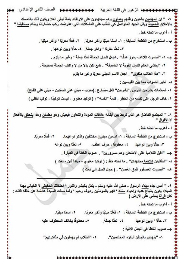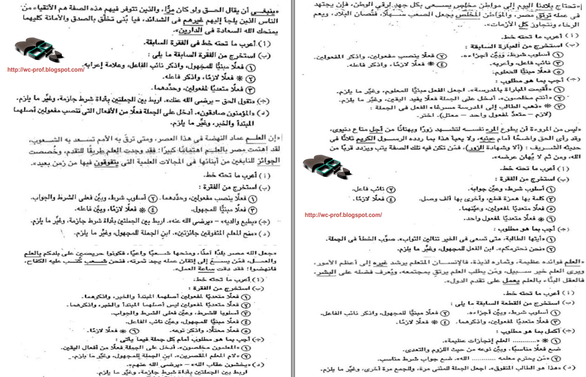 اقوى قطع نحوية مجابة للثالث الاعدادى لن يخرج عنها اى امتحان عربى