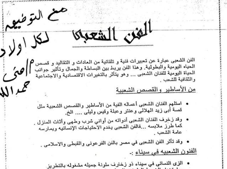 تلخيص التربية الفنية للصف الاول الاعدادى للترم الاول 2016 فى 3 ورقات فقط لضمان الدرجة النهائية