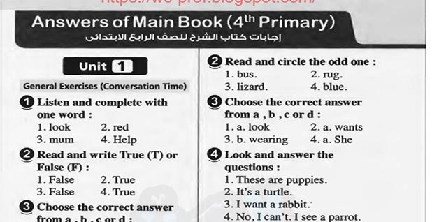 اجابات كتاب المعاصر فى مادة اللغة انجليزية للصف الرابع الابتدائي ترم أول في الدارسة
