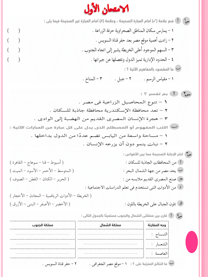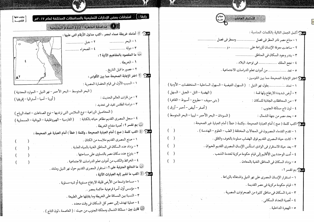 امتحانات سلاح التلميذ فى الدراسات الإجتماعية للصف الرابع الابتدائى نص