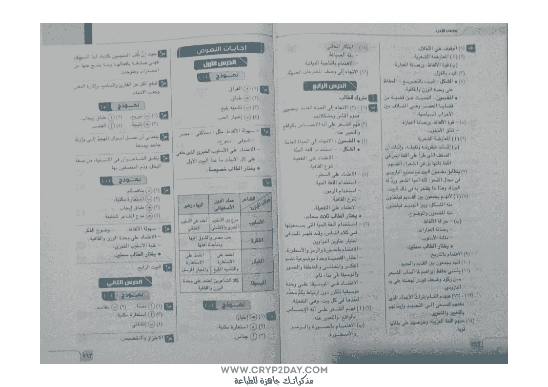 اجابات اسئلة كتاب الامتحان فى اللغة العربية للصف الاول الثانوى ترم ثانى نظام جديد