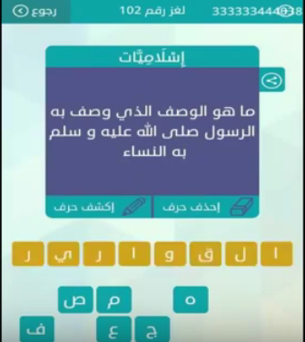 لغز 96 ما هو الوصف الدي وصف به الرسول صلى الله عليه و سلم النساء
