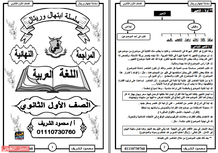 اقوى مذكرة لغة عربية للصف الاول الثانوى ترم ثانى منهج جديد للاستاذ شريف فهمى