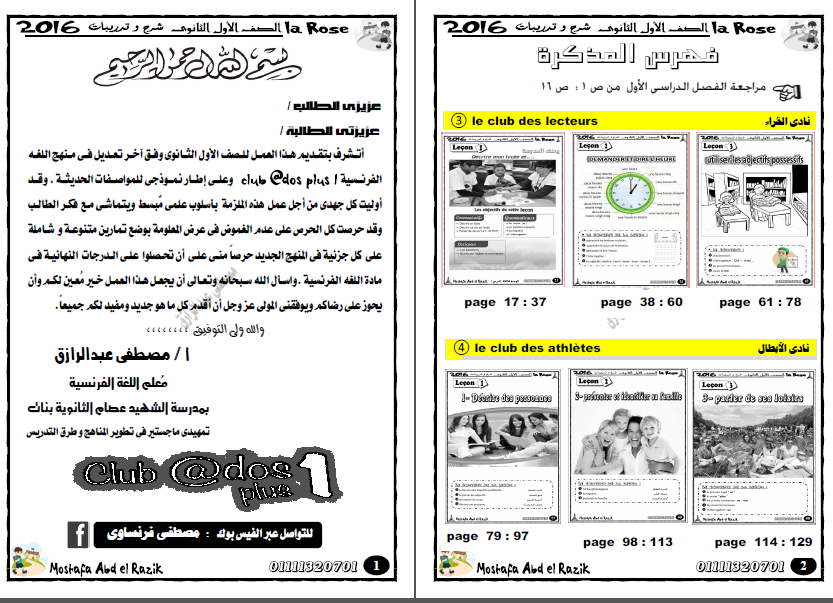 مذكرة للغة الفرنسية للصف الاول الثانوى ترم ثانى 2016 لمنهج الجديد Clud Dos Plus
