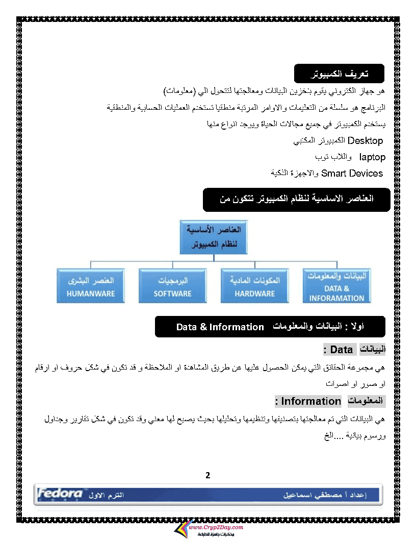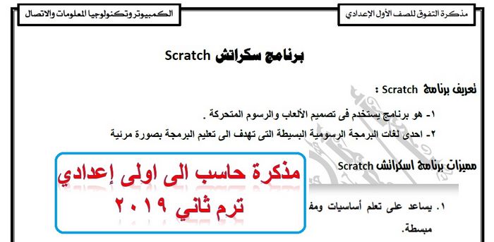 مذكرة حاسب الى للصف الأول الإعدادي ترم ثانى 2019 مستر أحمد عبد الرحمن