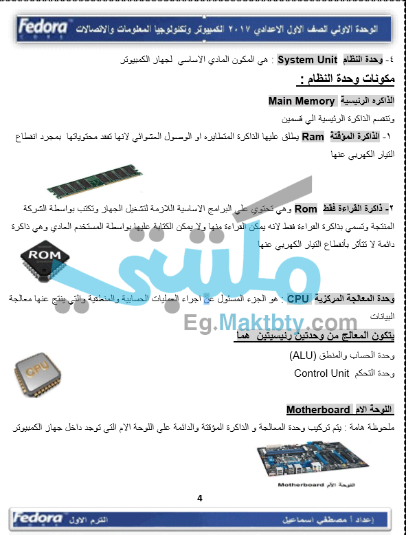 مذكرة الحاسب الالى للصف الاول الاعدادى الفصل الدراسى الاول 2018 بوابة مولانا
