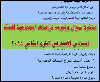 مذكرة سؤال وجواب دراسات اجتماعية للصف السادس الابتدائى الترم الثاني Word 2018