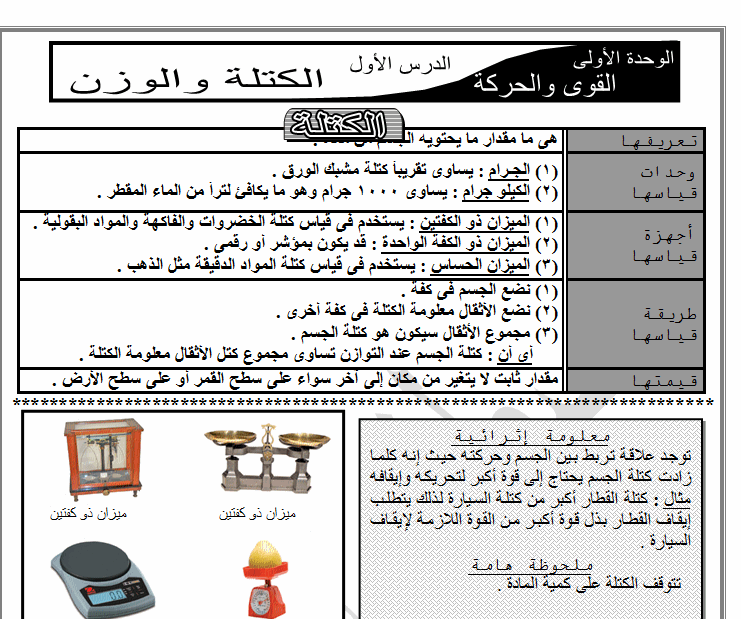 مذكرة علوم للصف السادس الفصل الاول 2016 2017 ملفات الكويت التعليمية