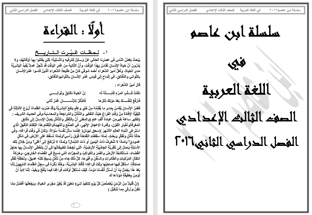 مذكرة ابن عاصم للغة العربية للثالث الاعدادى ترم ثانى منهج جديد