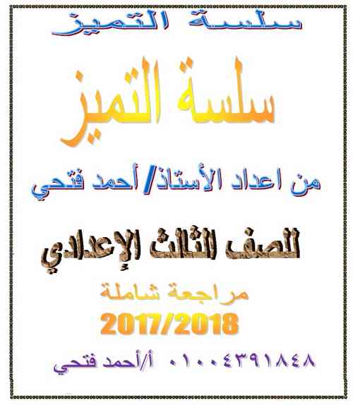 سلسلة التميز في المراجعة النهائية في اللغة العربية للصف الثالث الإعدادي ترم ثاني 2018 للأستاذ أحمد