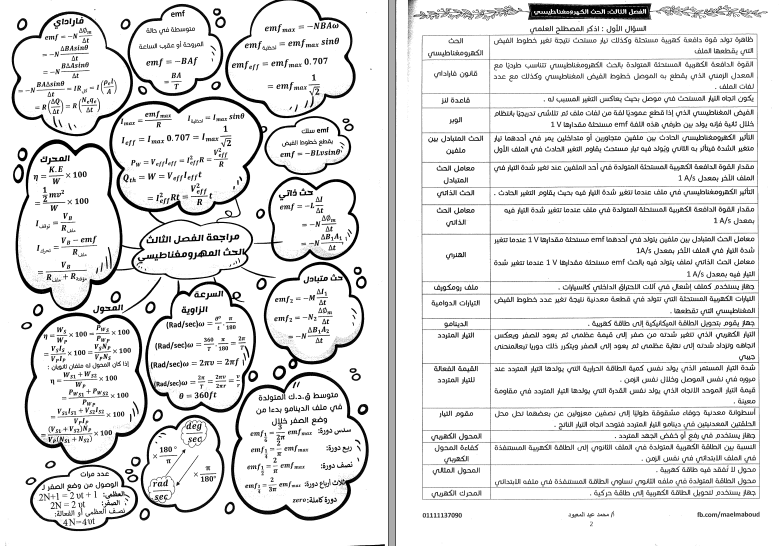 مراجعة نهائية للفصل الثالث للفيزياء للثالث الثانوى للاستاذ محمد عبدالمعبود اقوى مراجعة فيزياء