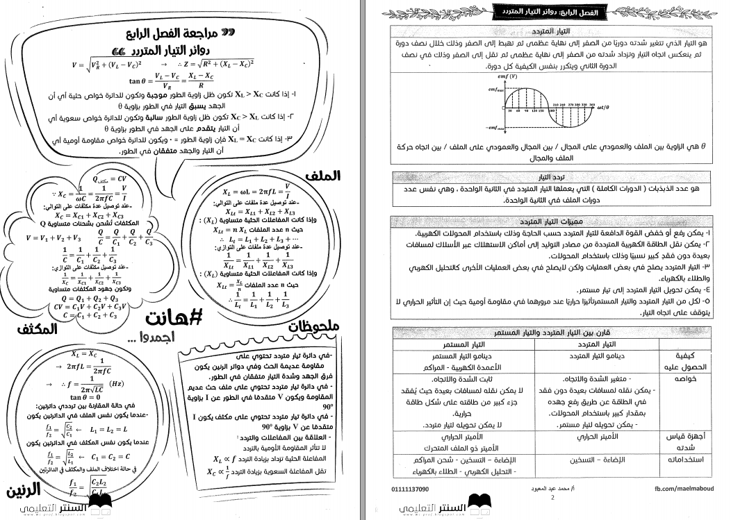 مراجعة نهائية للفصل الرابع للفيزياء للثالث الثانوى للاستاذ محمد عبدالمعبود اقوى مراجعة فيزياء