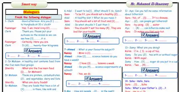 مراجعة ليلة امتحان اللغة الانجليزية بالإجابات للصف طالب