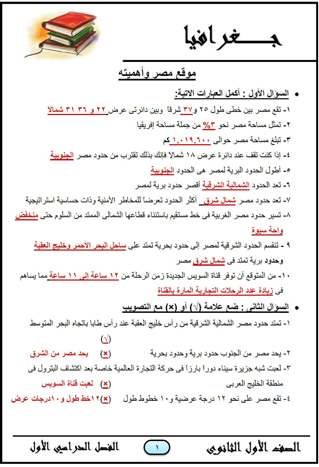 مراجعة جغرافيا للصف الثانى الثانوى 2016