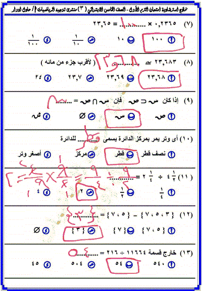 نماذج امتحانات للصف الخامس الابتدائي رياضيات ترم اول ملزمتي