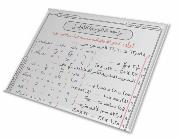 تحميل مراجعة ليلة الامتحان في الرياضيات للصف الخامس الابتدائي تلخيص الرياضيات فى 5 ورقات للاستاذ مصطفى حسانى