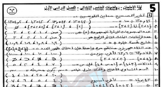 مراجعة ليلة الامتحان رياضيات للصف الخامس الابتدائى طالب