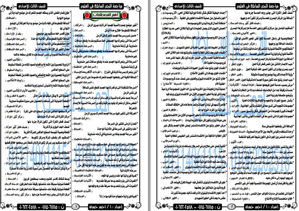 مذكرة مراجعة نهائية science للصف الثالث الاعدادي. 21 ديسمبر 2017.