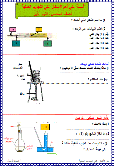 مراجعة ليلة الامتحان فى العلوم للصف السادس الابتدائى الترم الاول 2014 على التجارب العملية أ محمد الوكيل