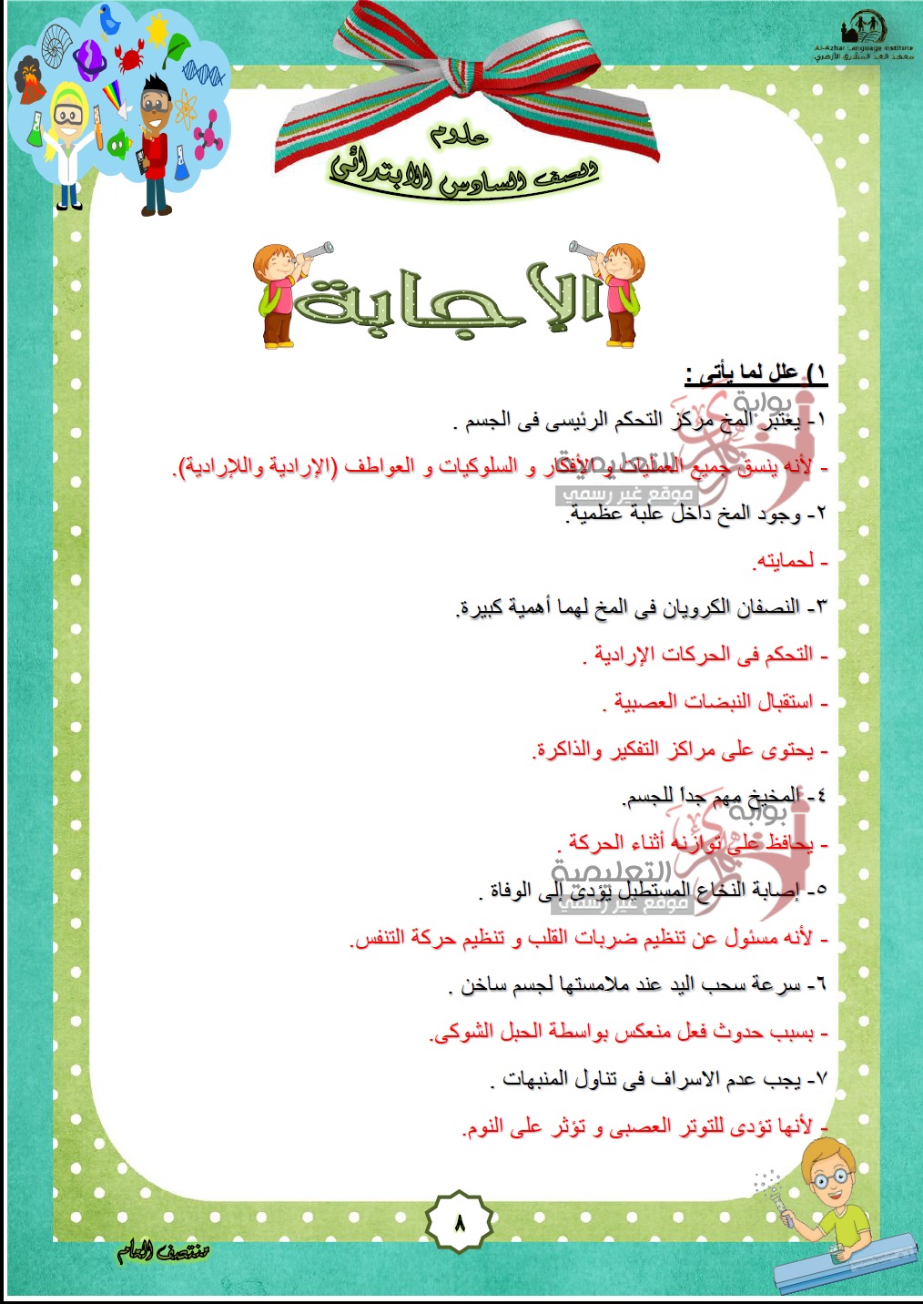 مراجعة علوم للصف السادس الابتدائي ترم اول 2018