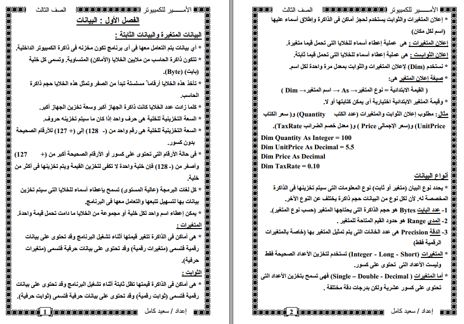 تلخيص ومراجعة الحاسب الالى للثالث الاعدادى ترم ثانى 2018 للاستاذ سعيد كامل