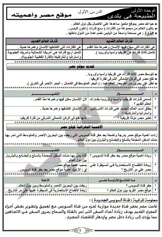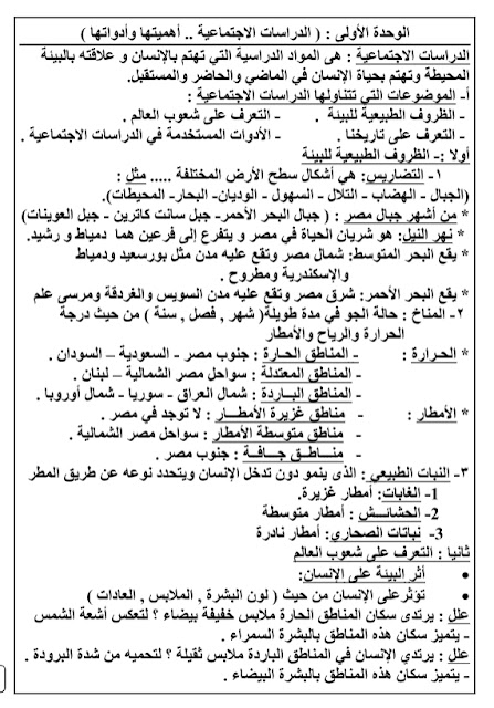 ملخص الدراسات الاجتماعية للصف الرابع الابتدائى ترم اول يلا نذاكر