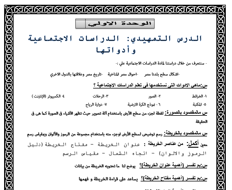اقوى مذكرة دراسات اجتماعية للرابع الابتدائى ترم اول بملف ورد مميز جدا