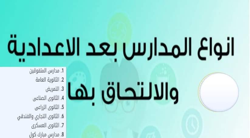 اقدم في ايه بعد الاعدادية وما هي المدارس المتاحة بعد الشهادة الاعدادية
