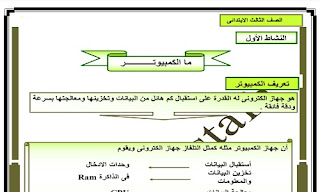 مذكرة حاسب آلى للصف الثالث الابتدائى ترم أول 2020 مذكرات تعليمية