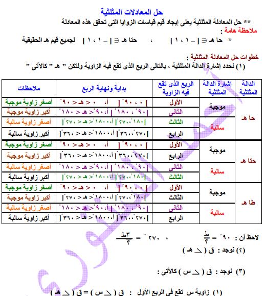 مذكرة شرح منهج الرياضيات حساب مثلثات للصف الاول الثانوى الترم الثانى 2018 Math Sec 1
