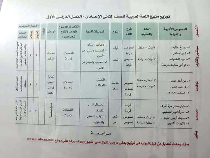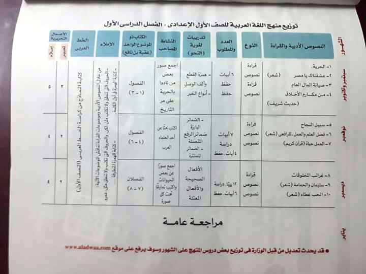 توزيع منهج اللغة العربية للصف الاول والثانى والثالث الاعدادى والثانوية العامة للعام الجديد 2020
