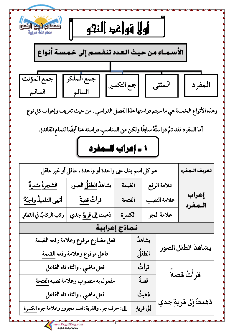 مذكرة النحو للصف الخامس الابتدائى الترم الاول 2020