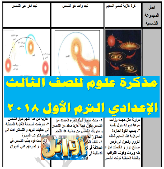 مذكرة علوم للصف الثالث الإعدادي الترم الأول 2018