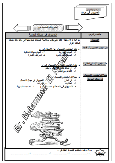 شيتات لمنهج الكمبيوتر للصف الاول الاعدادى لغات الترم الاول 2015 وتلخيص شامل س و ج ورد