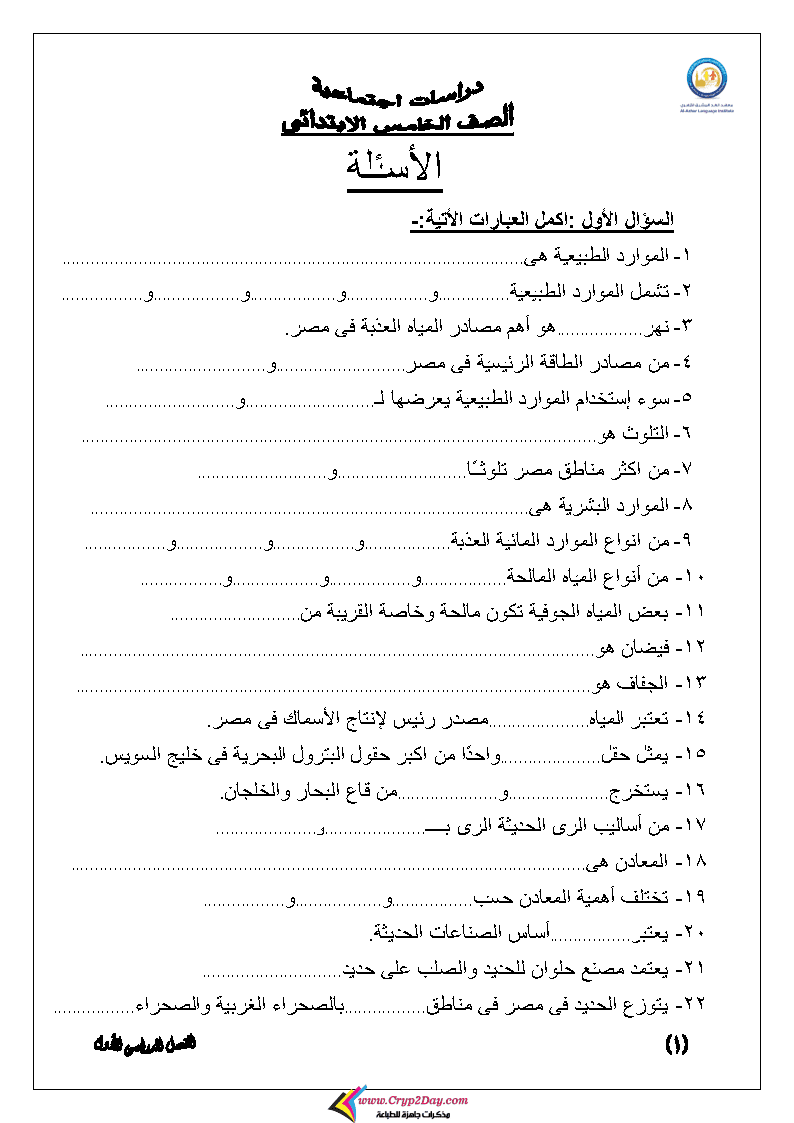مراجعة دراسات للصف الخامس الابتدائى الترم الاول 2020