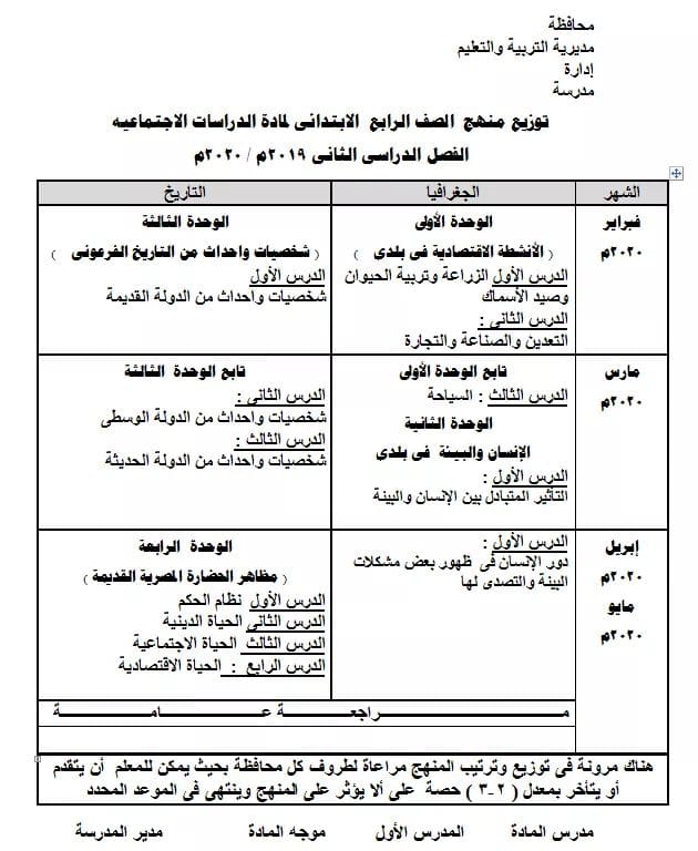 رسمي توزيع منهج الدراسات الاجتماعية 2019 الصف الخامس الإبتدائي ترم أول من مكتب مستشار الدراسات الاجتماعية خامسة ابتدائي
