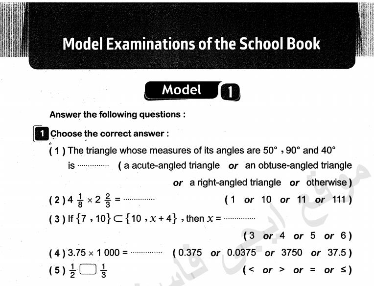 مراجعة آخر العام Math نماذج امتحانات متوقعة بالاجابات النموذجية للصف الخامس الابتدائي لغات