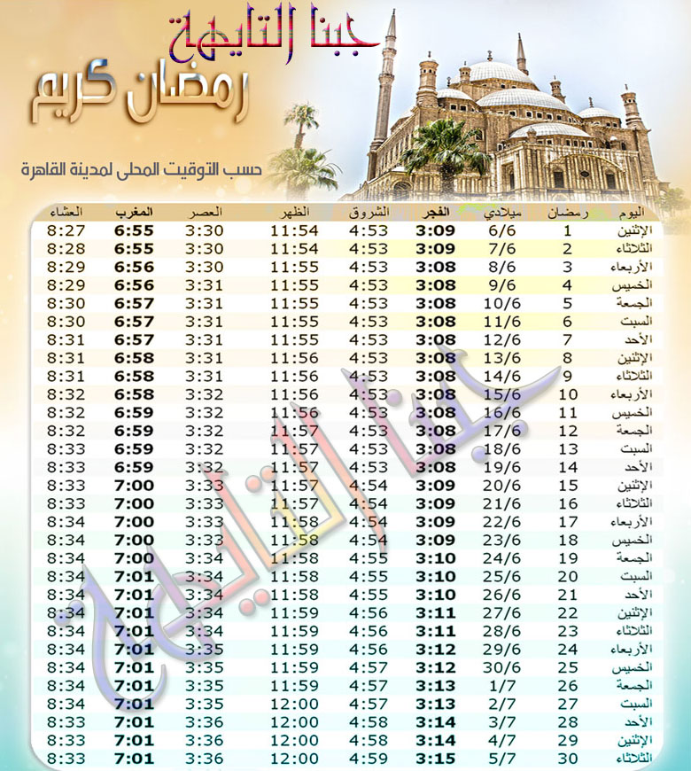 امساكيه شهر رمضان 2016 القاهره مدرسة جرافيك مان