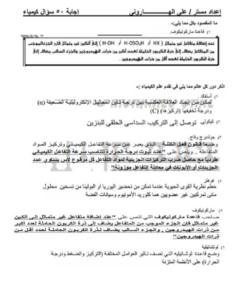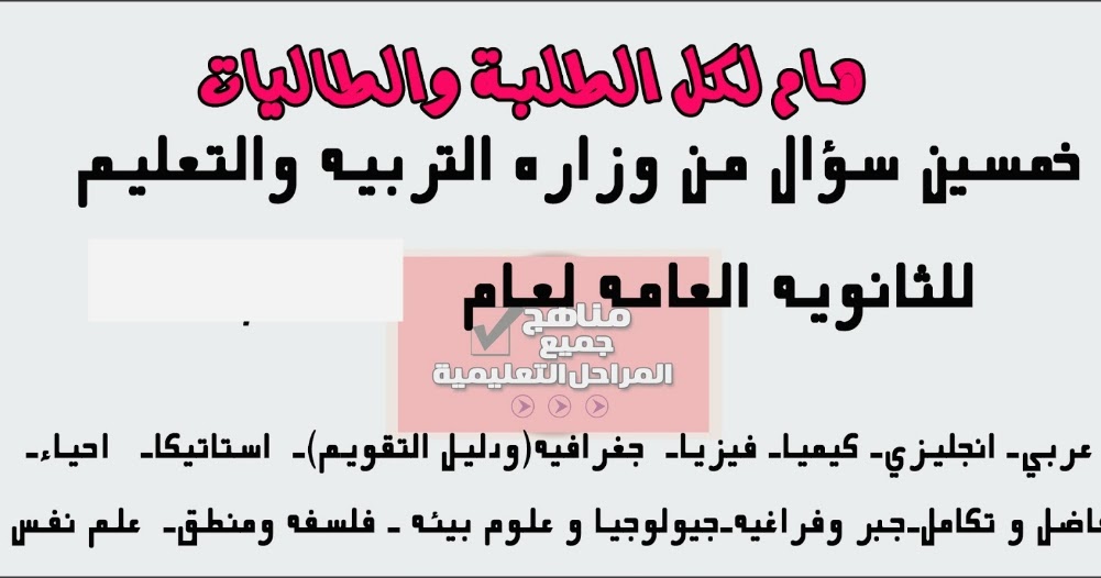 50 سؤال لكل مادة من وزارة التربية والتعليم ثانوية عامة