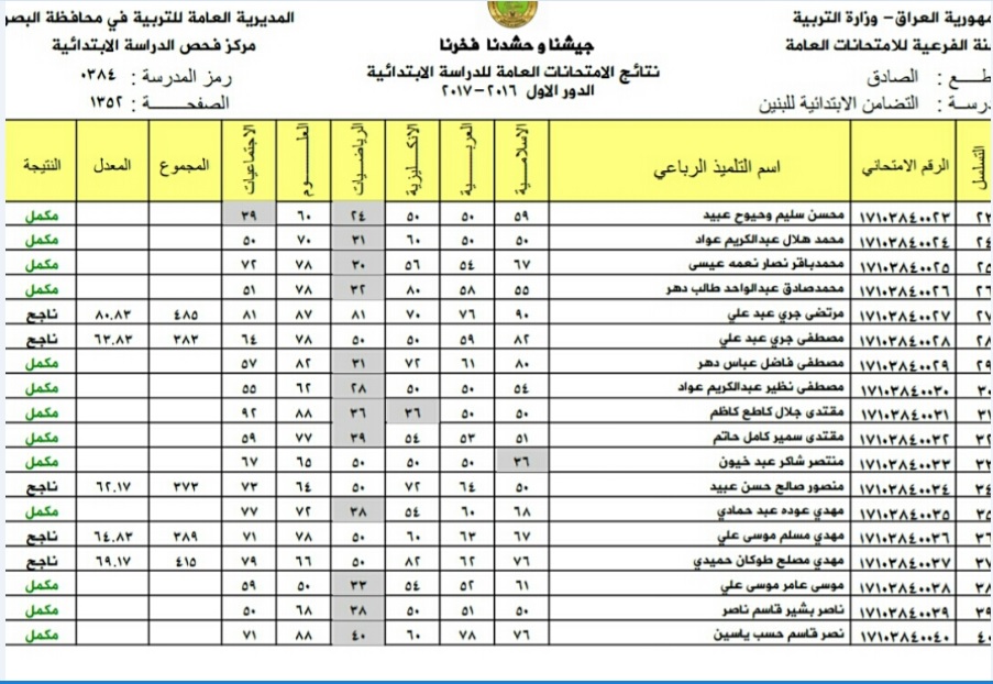 نتائج امتحانات الصف السادس الابتدائي لمحافظة البصرة 2017 الدور الاول هاشتاك نت