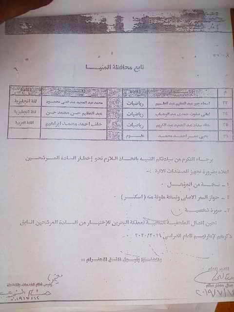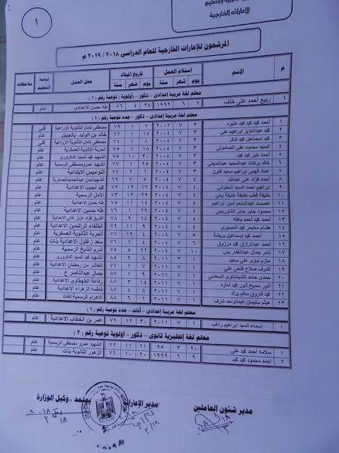 أسماء المرشحين للإعارات الخارجية للعام الدراسى 2018 2019