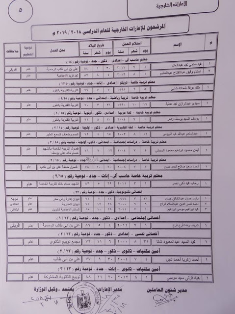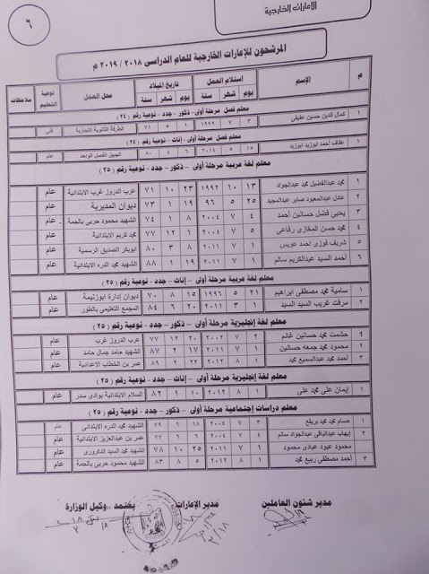 ننشر اسماء المعلمين المرشحين للإعاره لسلطنة عمان والبحرين والسودان والامارات بجميع المحافظات يوليو 2018