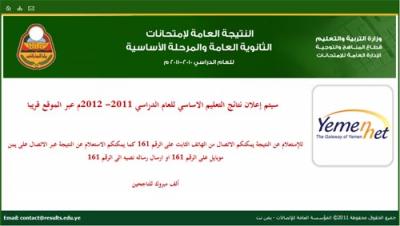 وزارة التربية والتعليم تأجيل إعلان نتائج الثانوية العامة للعام 2011 2012 لأسباب فنية يمن برس