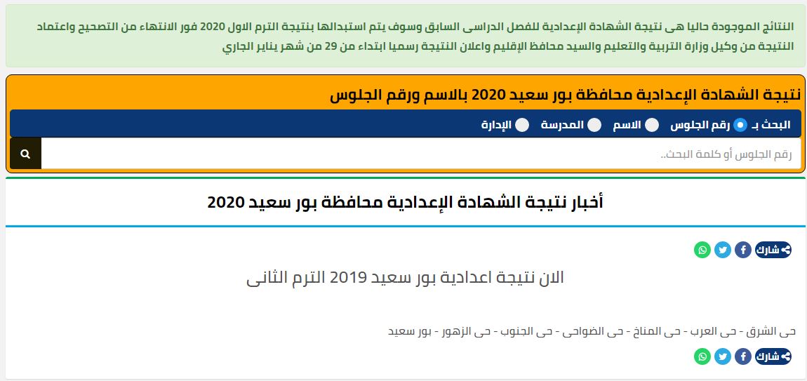 روابط نتيجة الشهادة الإعدادية محافظة بورسعيد برقم الجلوس 2020 الفصل الدراسى الثانى